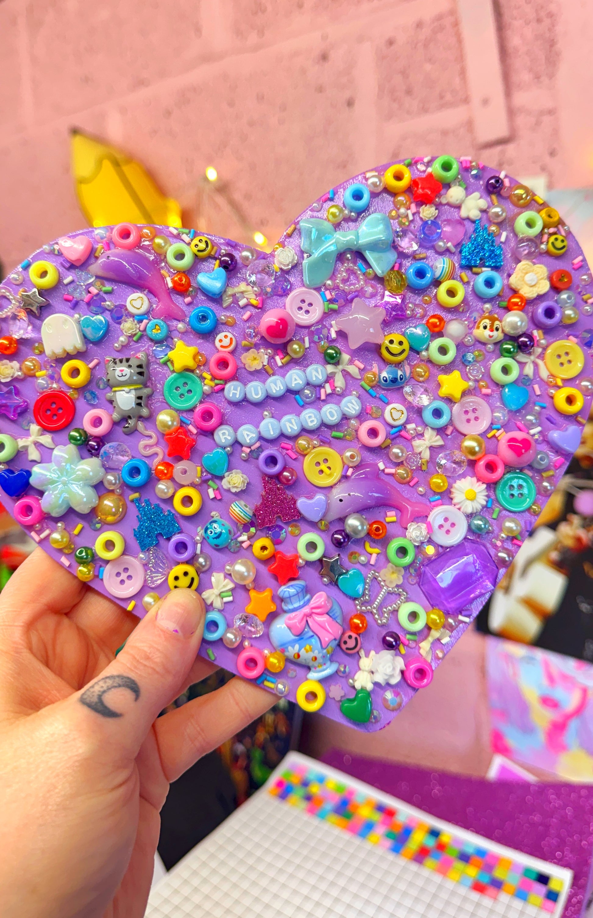 This ADORABLE wall hanging is made from trinkets and treasures to create something whimsical and fun for your walls!